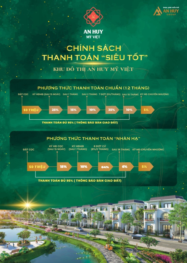 Dự án An Huy Mỹ Việt Long An có cơ chế thanh toán linh hoạt như sau: